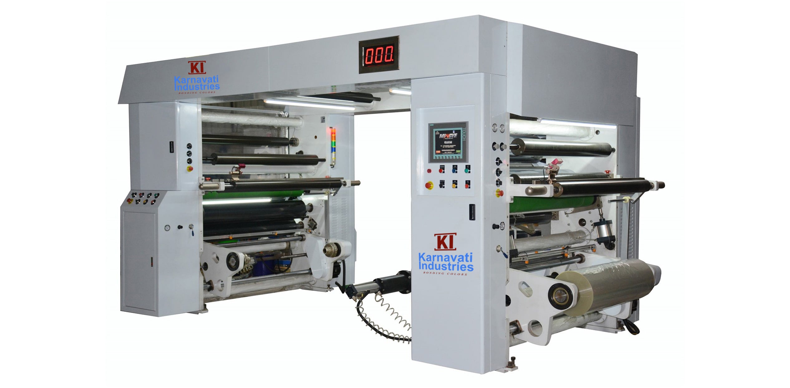 Karnavati Industries have ensure to adopt the latest Technology that could be provided in field of Flexible Packaging Industry , and Solvent less Lamination Machine is One of the most preferred among the Flexible Packaging Industry .The solventless lamination industry is a growing sector within the packaging industry. Solventless lamination machines are used to create flexible packaging materials such as bags, pouches, and wrapping films, which are used in a wide range of industries including food and beverage, pharmaceuticals, personal care, and more. Solventless lamination machines eliminate the need for solvent-based adhesives, which can have a negative impact on the environment and human health. This makes them an attractive option for companies looking to reduce their environmental footprint and improve the sustainability of their products.